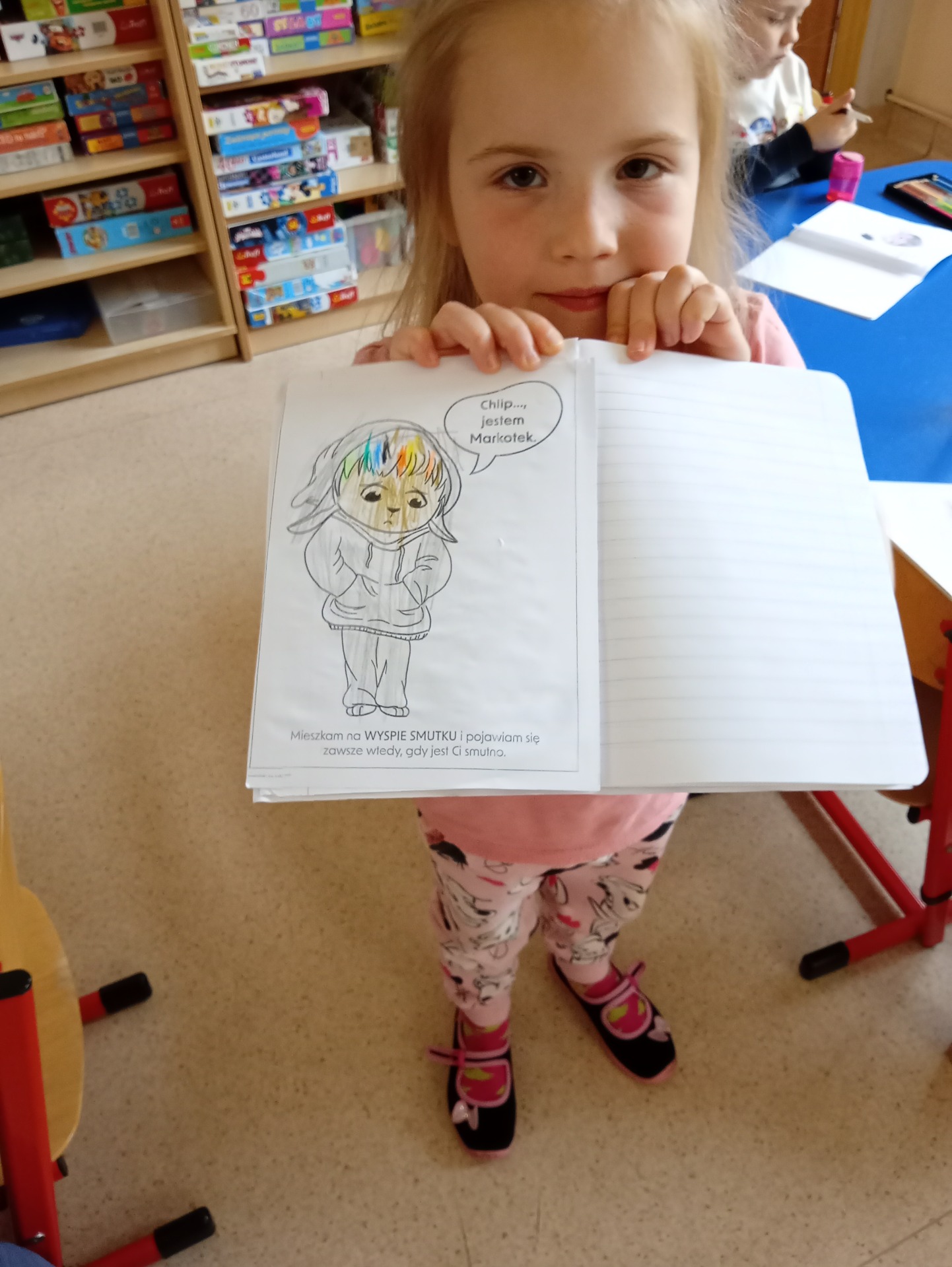 Dzisiaj Markotek z Wyspy Smutku pomagał dzieciom oswoić się z trudnym uczuciem smutku. Wyjaśnił, że jest to bardzo ważne i potrzebne uczycie, które pokazuje nam, co jest dla nas naprawdę ważne i na czym nam zależy. Tłumaczył, jak ważna jest wtedy rozmowa z kimś bliskim. Wspólnie też szukaliśmy sposobów, które pomagają dzieciom poradzić sobie ze smutkiem i przygnębieniem.