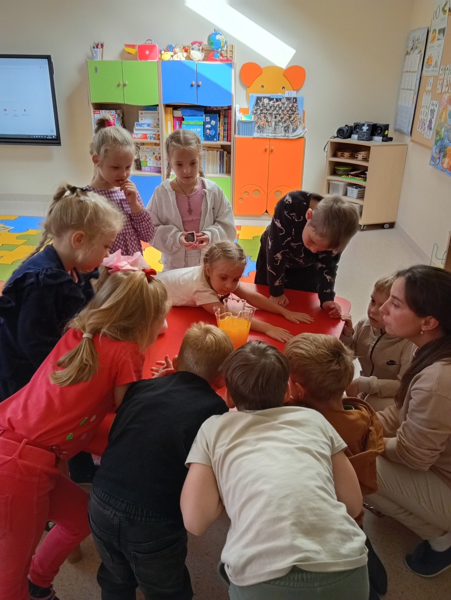 W ramach kolejnego wyzwania z projektu „Czuciaki” dzieci z grupy Krasnoludków poznawały emocję zdziwienia. Naszym przewodnikiem po tym temacie był Pan Łał – wesoły bohater, który pomógł przedszkolakom zrozumieć, czym jest zdziwienie, kiedy je odczuwamy i jak możemy je rozpoznać po mimice oraz zachowaniu. Aby lepiej zrozumieć tę emocję, przeprowadziliśmy eksperyment ze światłem, który wywołał wśród dzieci prawdziwe „łał”! Przedszkolaki z dużym zainteresowaniem obserwowały zmiany i z radością dzieliły się swoimi spostrzeżeniami.