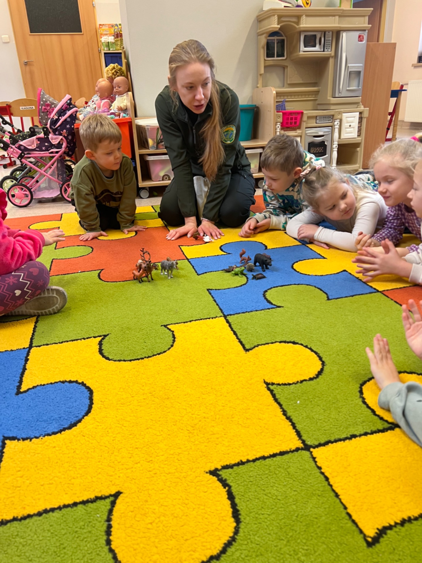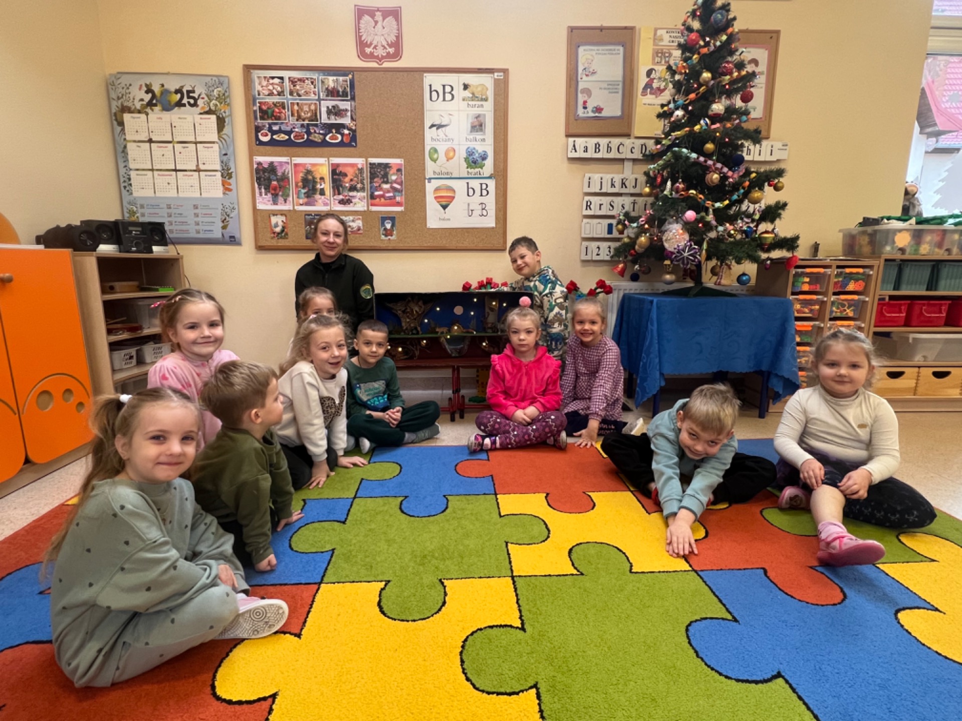 Spotkanie Krasnoludków z pracownikiem KPN na temat przygotowań zwierząt do przetrwania zimy.