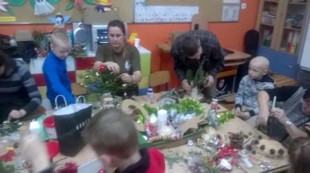 14 grudnia br. na warsztatach leśnych poprowadzonych przez Panią Katarzynę Moszumańską i Pana Krzysztofa Serafina, dzięki życzliwości Pani Nadleśniczy Zyty Bałazy, uczniowie klasy pierwszej mieli możliwość wykonania przepięknych stroików świątecznych. Ze zgromadzonych materiałów przyrodniczych i drobnych elementów ozdób świątecznych dzieci, pod czujnym okiem instruktorów i doradców komponowali stroiki według własnego pomysłu. Te własnoręcznie wykonane "cuda" zasilą zasoby przygotowane na Szkolny Kiermasz Świąteczny. Serdecznie dziękujemy organizatorom i kochanym mamom: Katarzynie Moszumańskiej, Wiolecie Źrebiec, Ilonie Grab-Kurdzielewicz i Agnieszce Rozborskiej za poświęcony czas, zaangażowanie i ofiarną pomoc w kultywowaniu tradycji świątecznych...