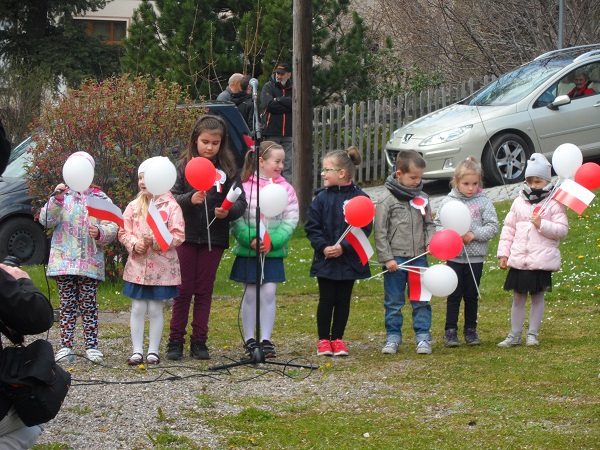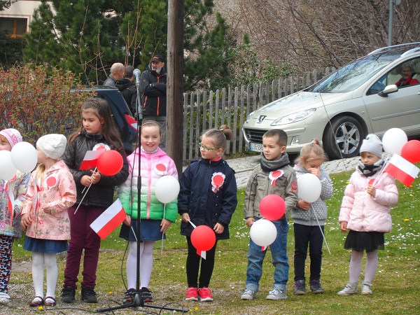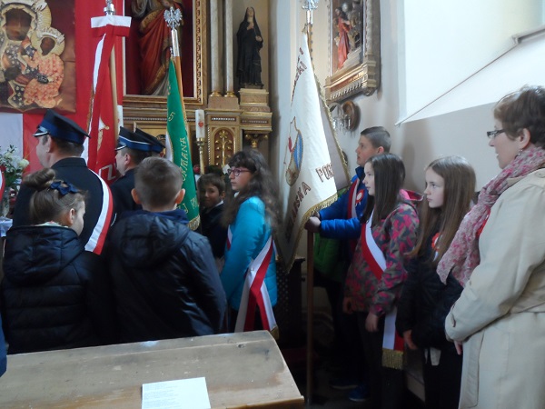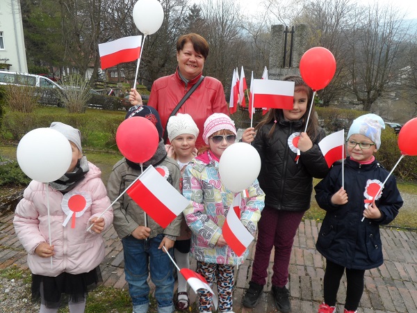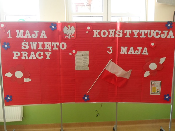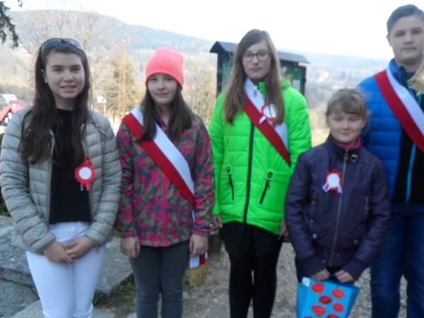 Bardzo dziękujemy uczniom (Julii Boleszczuk, Laurze Karczmarczyk, Martynie Deputat, Adriannie Chrostek, Dawidowi Stawniakowi, Maksymilianowi Biernatowi, Konradowi Butrymowi, Wiktorowi Żmudzińskiemu, Emilii Wajdowicz, Weronice Paczkowskiej, Marioli Ptak, Kindze Szafarz, Bartłomiejowi Stobińskiemu) za wspólne uczczenie trzeciomajowego święta.