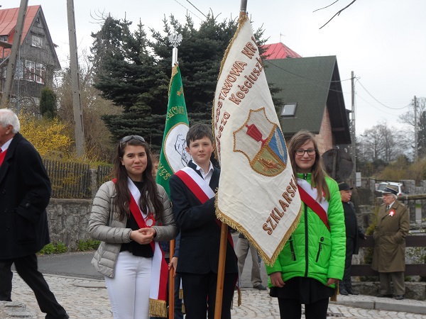 Dnia 3 maja 2017 roku poczet sztandarowy naszej szkoły wziął czynny udział w uroczystościach miejskich związanych z 226 rocznicą uchwalenia Konstytucji 3 maja pod opieką Pań: Bożeny Bąk, Doroty Kuchmistrz, Anny Szydłowskiej i Rodziców. Najpierw wszyscy uczestniczyliśmy we mszy św. w intencji ojczyzny. O kotyliony dla mieszkańców i przyjezdnych zadbały Panie z Domu Dziecka. Potem udaliśmy się do SP 5 na herbatę (za co dziękujemy Pani Beacie Zawadzkiej - Grabskiej). Następnie poszliśmy na Skwer Jana Pawła II na uroczystość miejską, którą poprowadził Pan Wojciech Zarówny. Po wprowadzeniu pocztów sztandarowych i zaśpiewaniu hymnu państwowego prowadzący spotkanie zaznajomił zebranych z historią uchwalenia Konstytucji 3 maja, pierwszej nowoczesnej konstytucji w Europie. Później zabrał głos Pan Mirosław Graf, Burmistrz Miasta, który w swoim przemówieniu odniósł się do wydarzeń sprzed 226 lat. Podkreślił także walory miejsca, w którym mieszkamy, i wartość mieszkańców. Piękno święta wyeksponowały przedszkolaki swoim występem - recytowały wiersze okolicznościowe i śpiewały piosenki patriotyczne. Potem szkoły i instytucje oraz organizacje działające w mieście złożyły kawiaty pod pomnikiem poległych żołnierzy w czasie II wojny światowej.