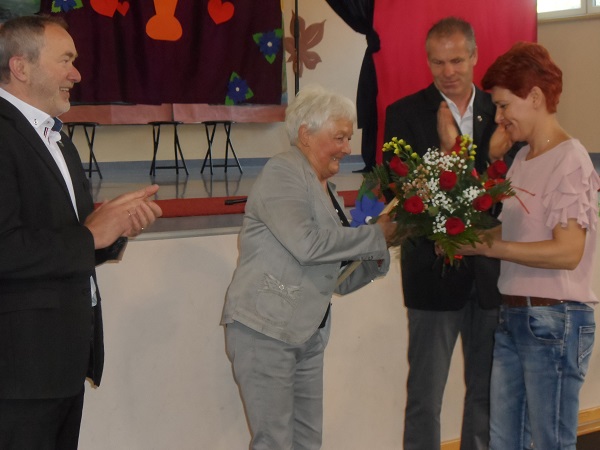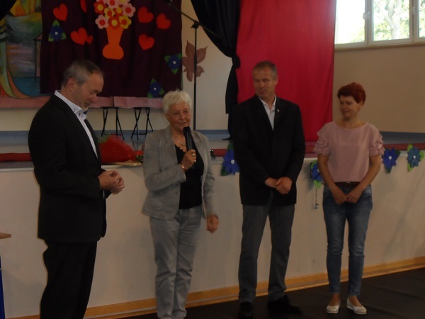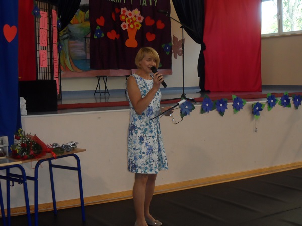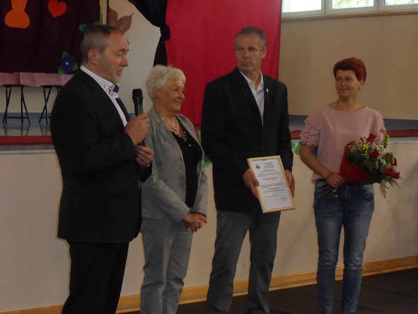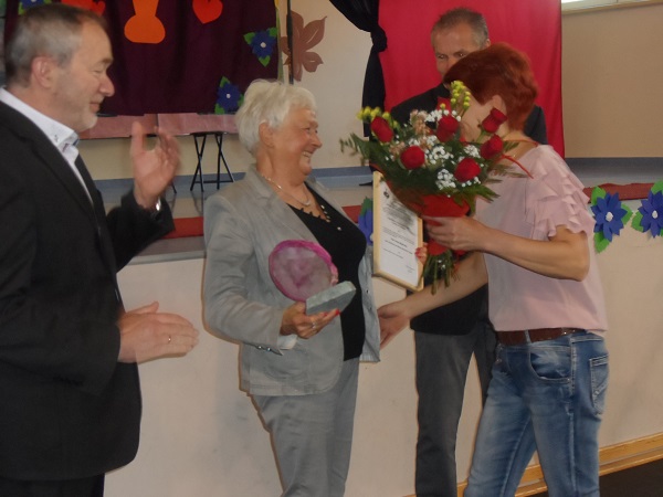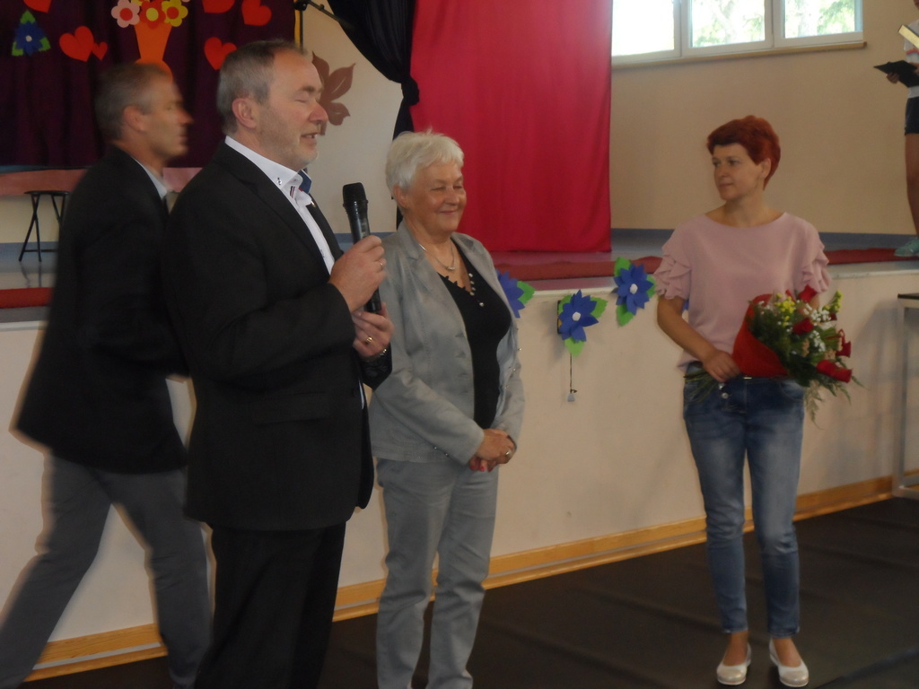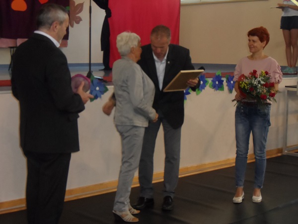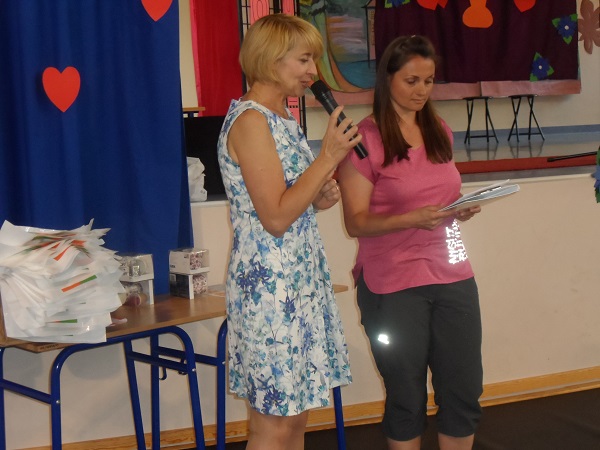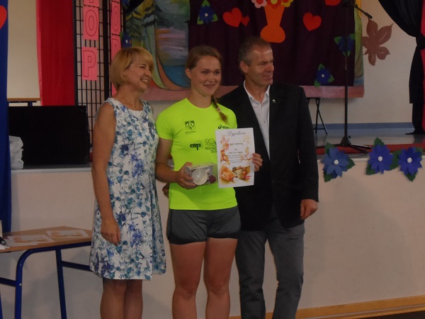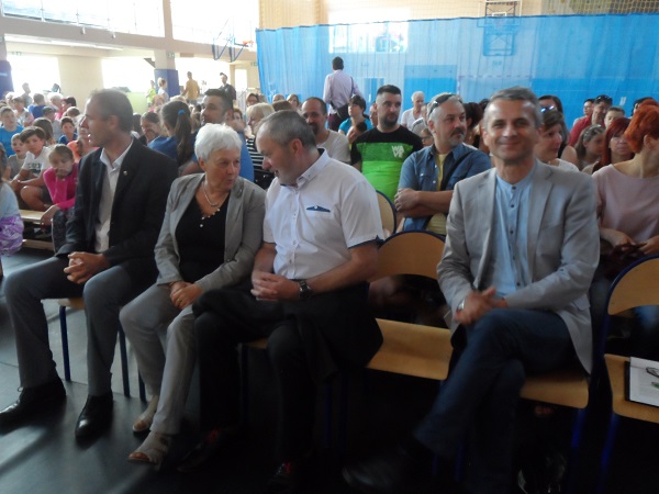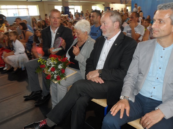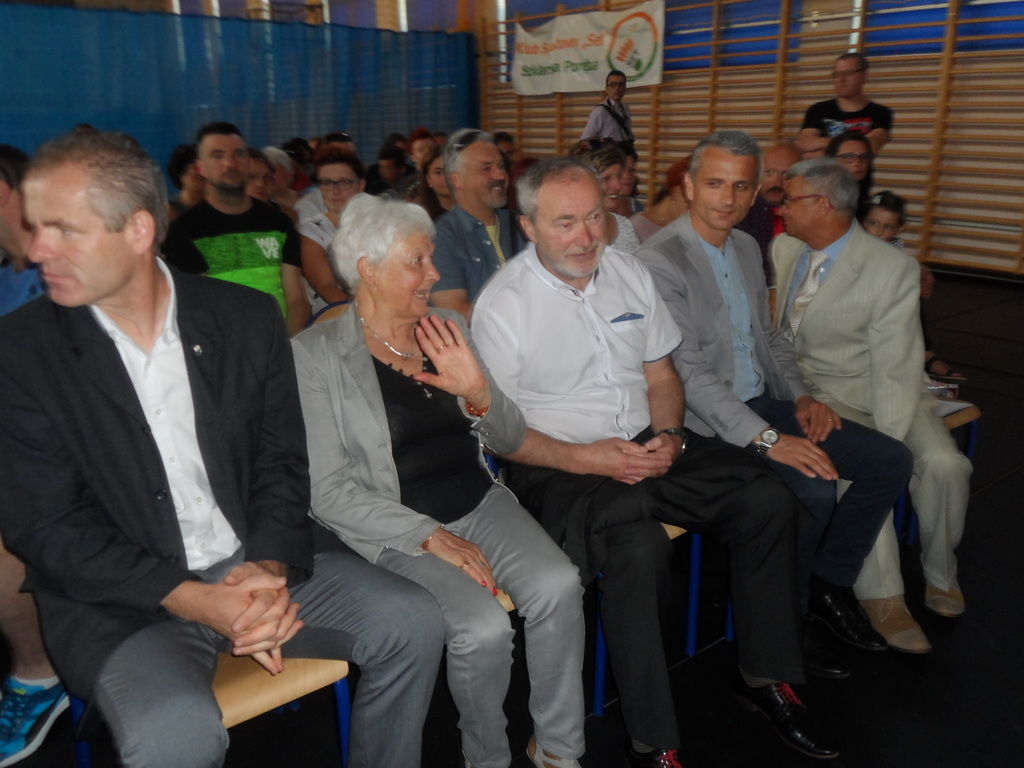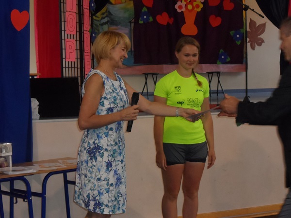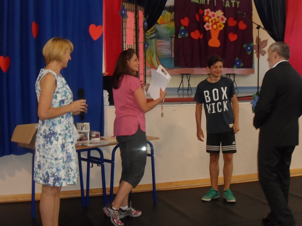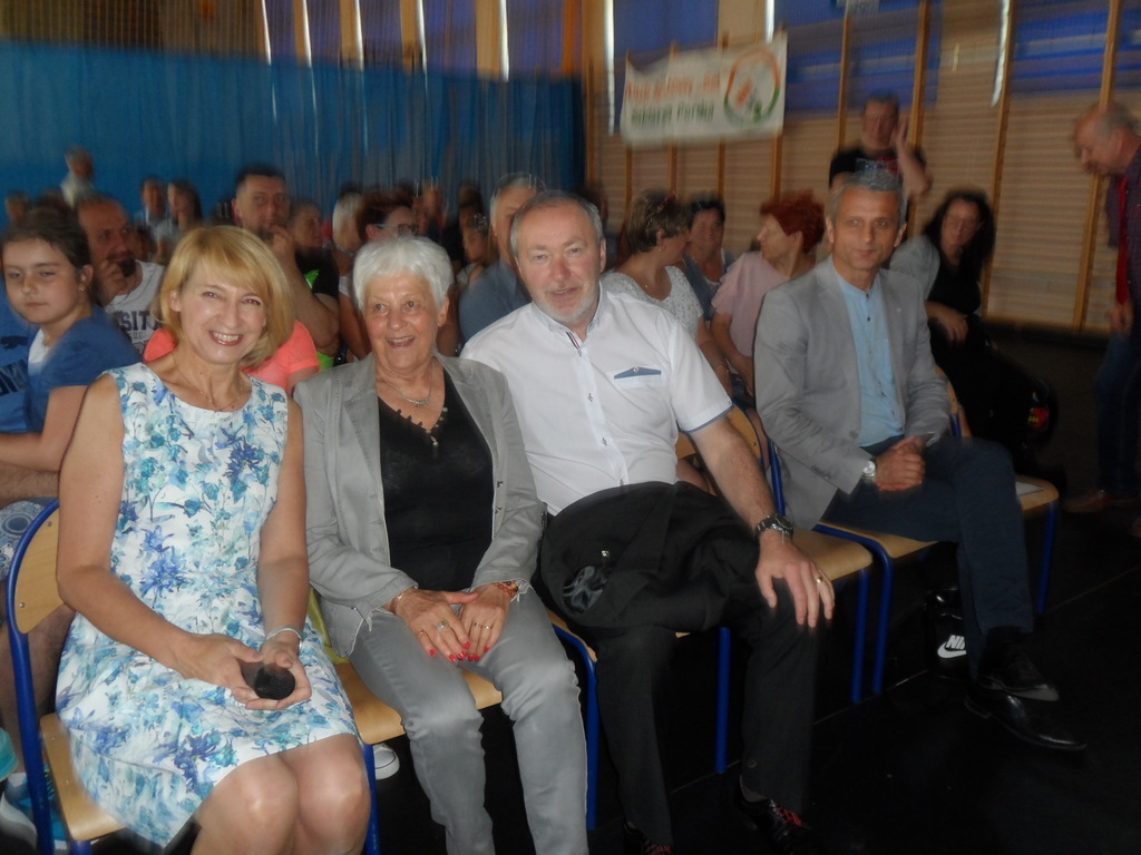 Dnia 3 czerwca 2017 roku odbył się w naszej szkole Festyn Rodzinny, na który przybyli licznie uczniowie i rodzice, za co serdecznie dziękujemy. Spotkanie w sali gimnastycznej poprowadziła Emilia Wajdowicz, przewodnicząca Samorządu Uczniowskiego, która przywitała zebranych i poinformowała, jak będzie przebiegała uroczystość. Powiedziała też, że dzisiaj przypada VI Memoriał im. Darka Hudoby. Zaprosiła wszystkich do uczczenia pamięci Pana Dariusza Hudoby, sportowca, nauczyciela, wychowawcy, osoby krzewiącej kulturę fizyczną wśród dzieci i młodzieży, minutą ciszy. Potem oddała głos Pani Dyrektor, Justynie Kozik, która przywitała Gości: Pana Mirosława Grafa, Butmistrza Szklarskiej Poręby, Pana Stanisława Kozinę, zastępcę Burmistrza, Pana Krzysztofa Jahna, Przewodniczącego Rady Miasta, Pana Feliksa Rosika, Sekretarza Urzędu Miasta, Radnych i Dyrektorów placówek oświatowych oraz szczególnie Panią Irenę Myśliwiec, emerytowanego nauczyciela i długoletniego dyrektora SP 1, trenera klubów sportowych w mieście. Pani Justyna Kozik powiedziała, że Pani Irena jest bardzo aktywną osobą do dzisiaj, pełną energii i żywotności. Kiedyś tchnęła w mury SP 1 ducha sportowego i my staramy się hołdować tym tradycjom. Pan Mirosław Graf i Pan Krzysztof Jahn wręczyli Pani Irenie Myśliwiec dyplom z tytułem "Zasłużona dla Miasta Szklarska Poręba", pięknie dziękując za wszystkie lata pracy i zachęcanie do podejmowania aktywności sportowej przez dzieci, młodzież i dorosłych. Wszyscy zgromadzeni nagrodzili Panią Irenę Myśliwiec gromkimi brawami. Pani Irena serdecznie podziękowała za wyróżnienie i powiedziała, że zawsze kochała sport i starała się nim "zarażać" najmłodszych.