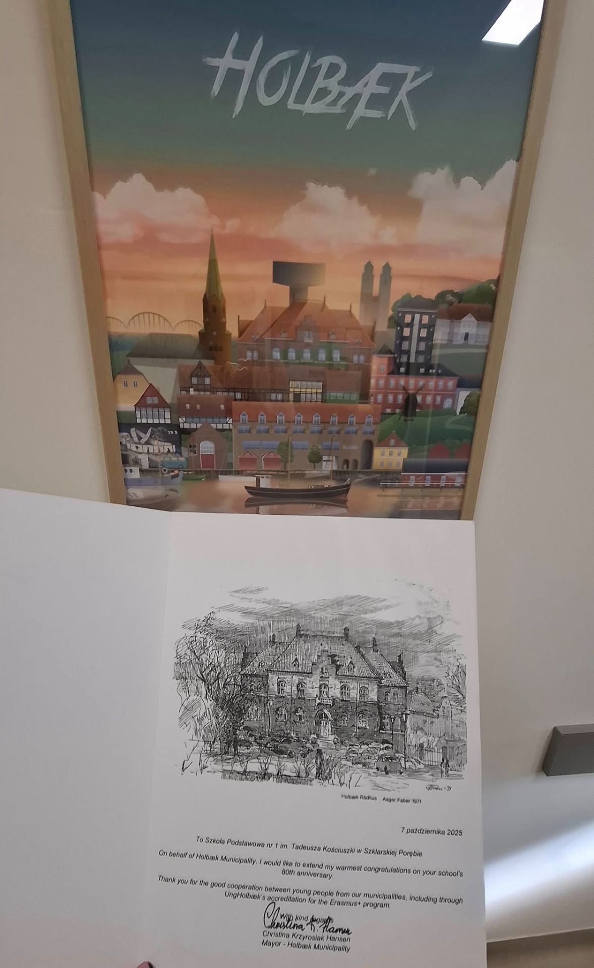 Nasza szkoła od 2015 roku współpracuje z pedagogami z Danii. Na początku to były wyjazdy nauczycieli do Asneas i wizyty w Szklarskiej Porębie nauczycieli z Danii oraz lekcje i spotkania online. W 2023 roku wzięliśmy udział jako szkoła partnerska w programie Erasmus plus wspólnie z organizacją UngHolbæk . Uczniowie z Danii i naszej szkoły w zimie w Szklarskiej Porębie i w lecie w Holbeak wspólnie realizowali projekt: Turystyka i ekologia w Europie. W tym roku rozpoczynamy kolejną współpracę w ramach programu Erasmus plus. Projekt pod hasłem: Młodzi w Europie, bezpieczeństwo moje i innych w różnych aspektach będą realizować uczniowie z Holbeak i z naszej szkoły w zimie i lecie. Dziękujemy naszym przyjaciołom z Danii za spotkanie w czasie naszego jubileuszu. Dziękujemy za prezenty, zajęcia cyrkowe dla uczniów i do zobaczenia w styczniu ![]()