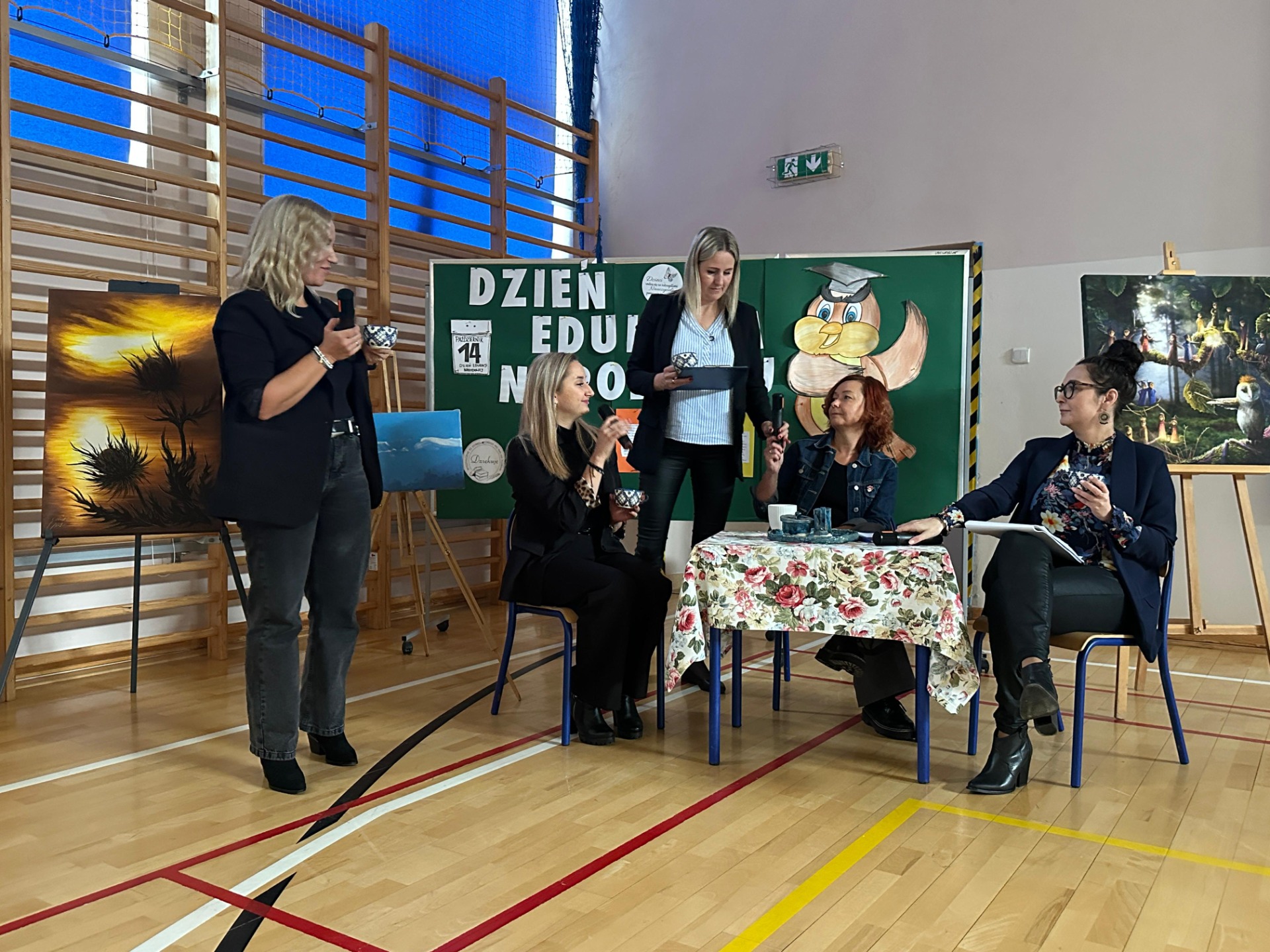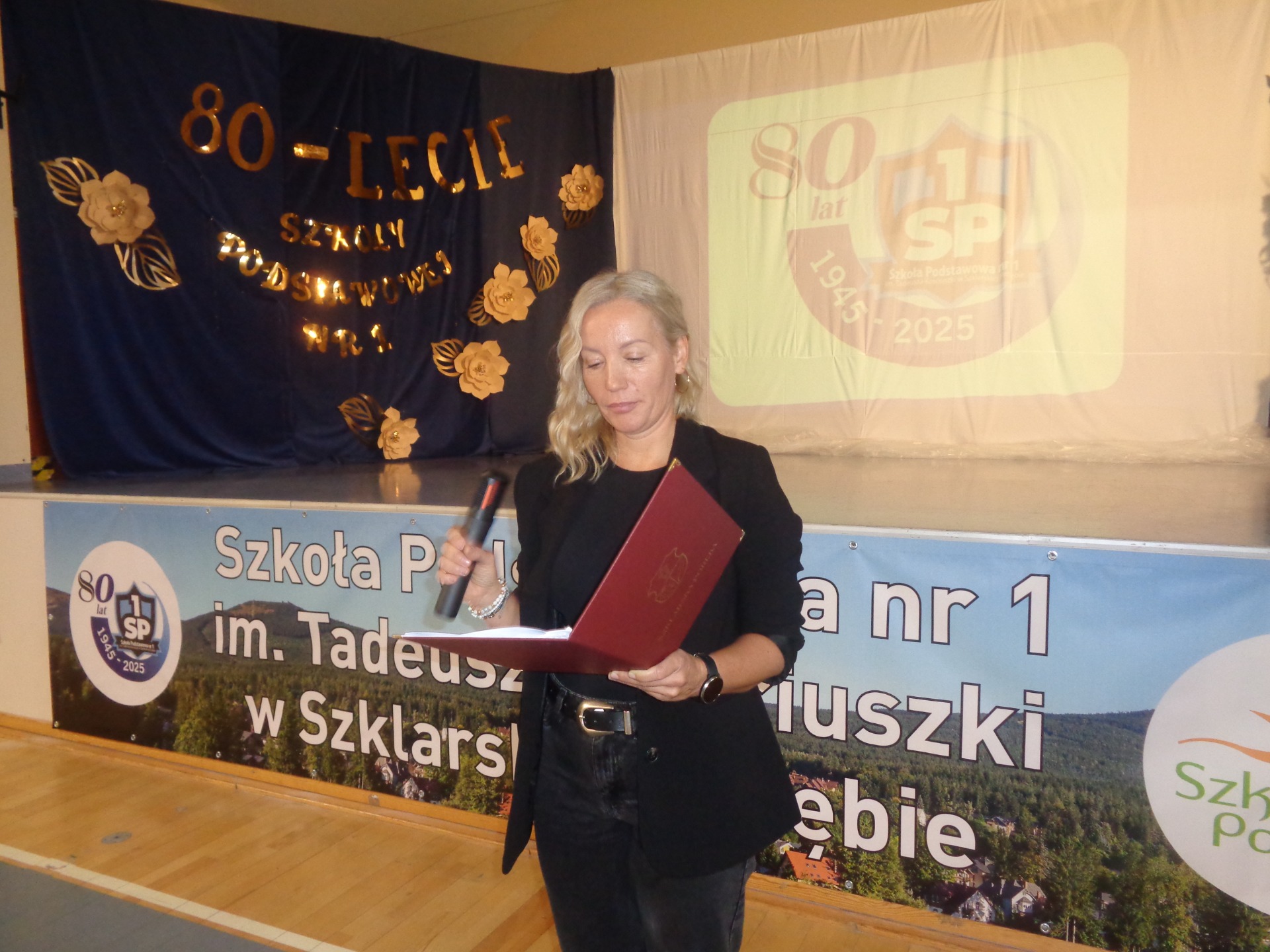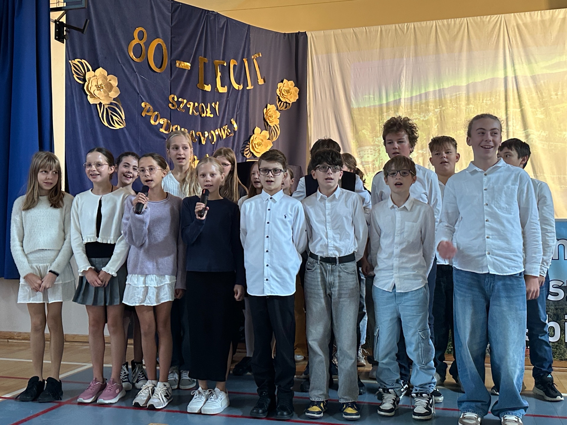 14 października 2025 roku obchodziliśmy uroczyście Dzień Edukacji Narodowej. Apel poprowadziła Pani Izabela Michalik, wychowawczyni klasy VI. W sali gimnastycznej spotkali się pracownicy szkoły, uczniowie i rodzice. Wszyscy mieli okazję zobaczyć i wysłuchać pięknego przedstawienia przygotowanego z okazji 80-lecia szkoły. Na długo zostaną nam w pamięci scenki ,,U stóp Ducha Gór" w wykonaniu Filipa, Franka i Kajetana oraz ,,Przy sztalugach duszy" zaprezentowanej przez nasze nauczycielki, a także perfekcyjny ,,Taniec światła", taniec drugoklasistów, pięknie zaśpiewane piosenki i TELEDYSK. Nad prezentacją multimedialną czuwała Pani Ewa Tośko. Pani Dyrektor złożyła najserdeczniejsze życzenia całej społeczności szkolnej. Podziękowała za codzienną pracę, cierpliwość i zaangażowanie. Pożyczyła też wielu sukcesów i wytrwałości w dążeniu do celu. Głos zabrała również Pani Magdalena Wiśniewska, przewodnicząca Rady Rodziców, która przekazała życzenia i słowa wsparcia dla wszystkich pracowników szkoły, a także dla naszych uczniów. Dziękujemy Radzie Rodziców za przygotowanie słodkiego poczęstunku dla uczniów i pracowników szkoły.