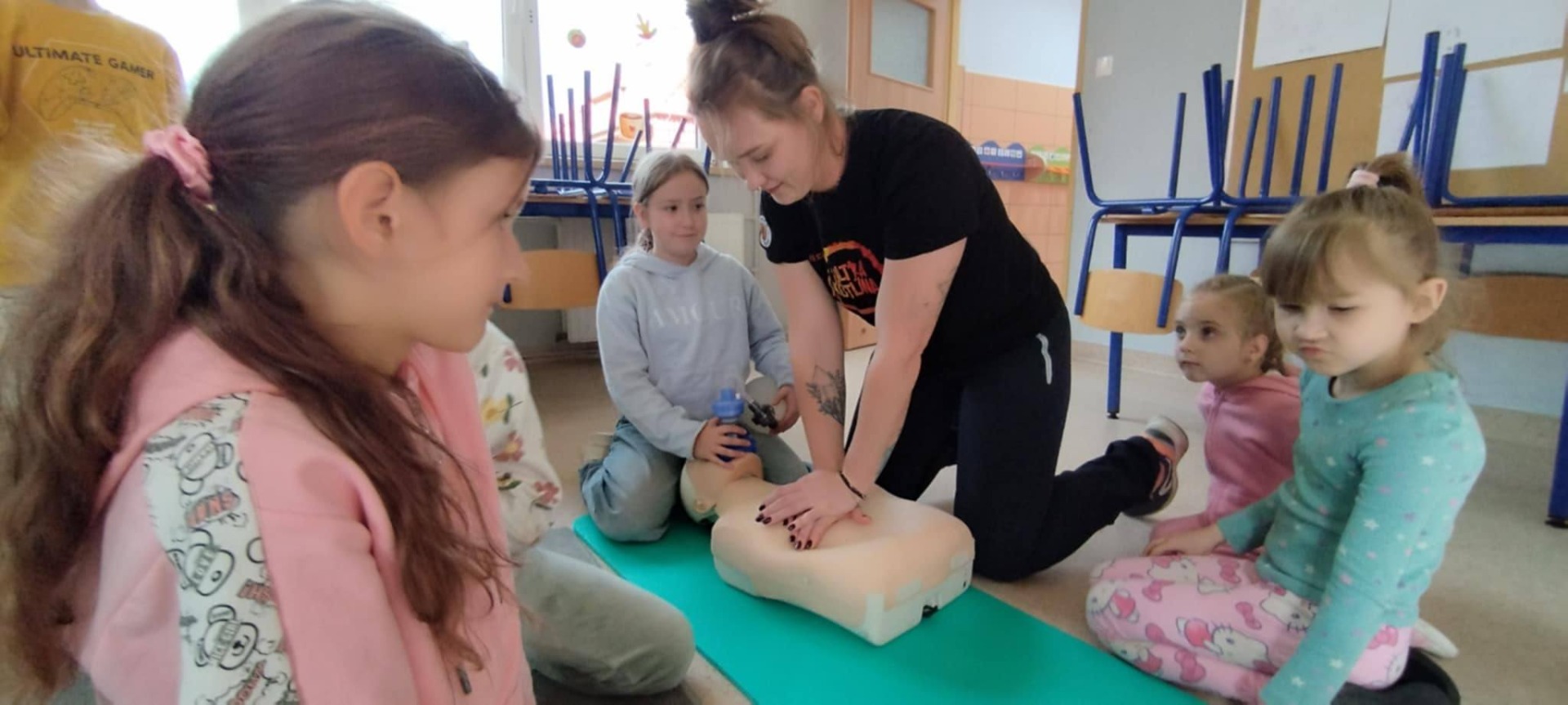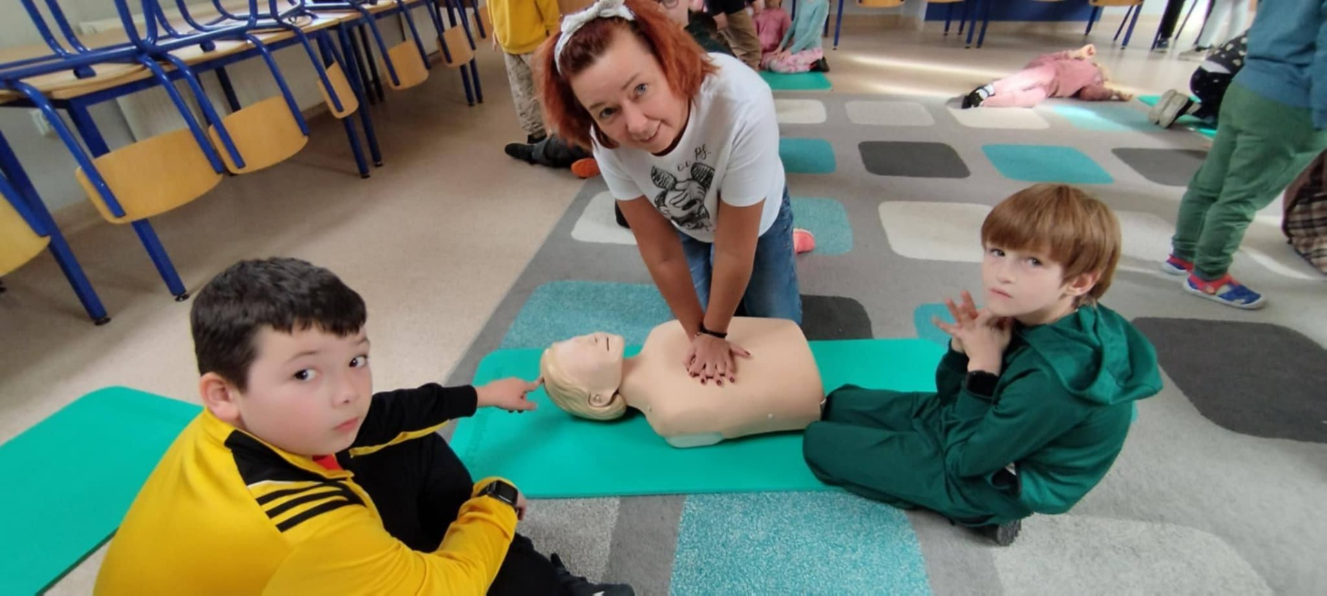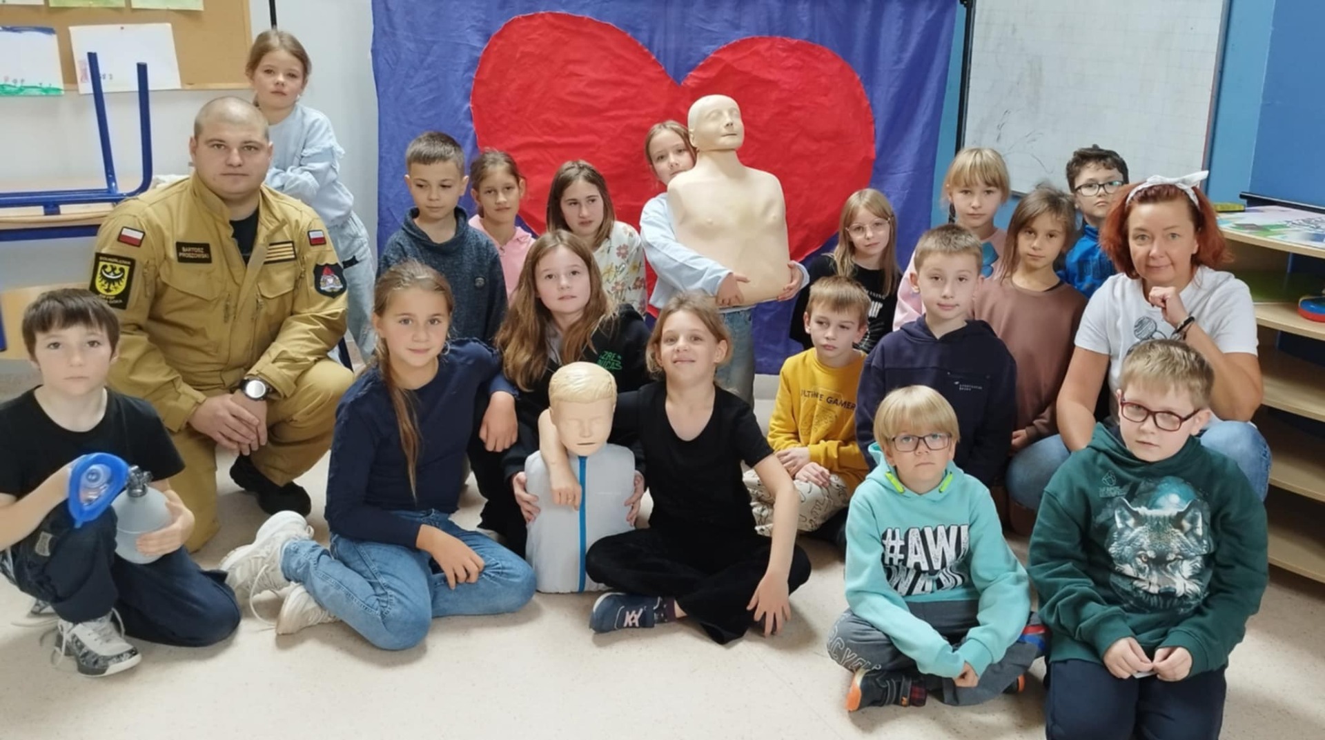 16 października 2025 roku podczas Europejskiego Dnia Przywracania Czynności Serca placówki w całej Polsce podjęły próbę pobicia rekordu w pierwszej pomocy. Punktualnie o 12:00 w całym kraju przystąpiono do próby bicia rekordu, polegającego na prowadzeniu resuscytacji krążeniowo-oddechowej na fantomie przez 30 minut. W naszej szkole w akcji wzięli udział uczniowie najmłodszych klas i przedszkolaki pod opieką nauczycieli: Ewy Tośko, Karoliny Pyczak, Angeliki Urbaniak, Natalii Kowal, Anny Hochół, Izabeli Wojsiat i Pani Agaty Janas, która była koordynatorem akcji. Dziękujemy za pomoc Komendzie Miejskiej Państwowej Straży Pożarnej z Jeleniej Góry - Panom Tomaszowi Trusewiczowi i Bartoszowi Proszowskiemu.