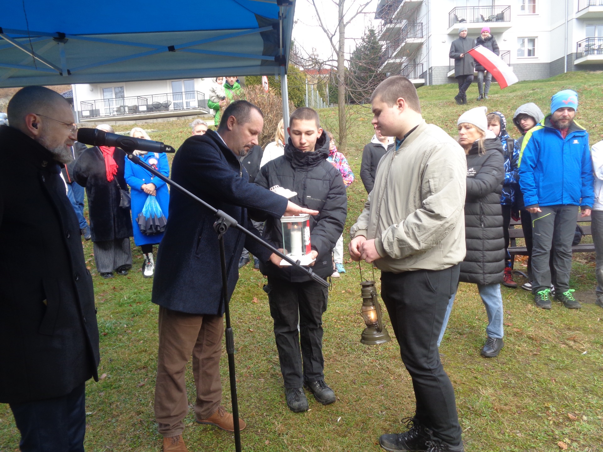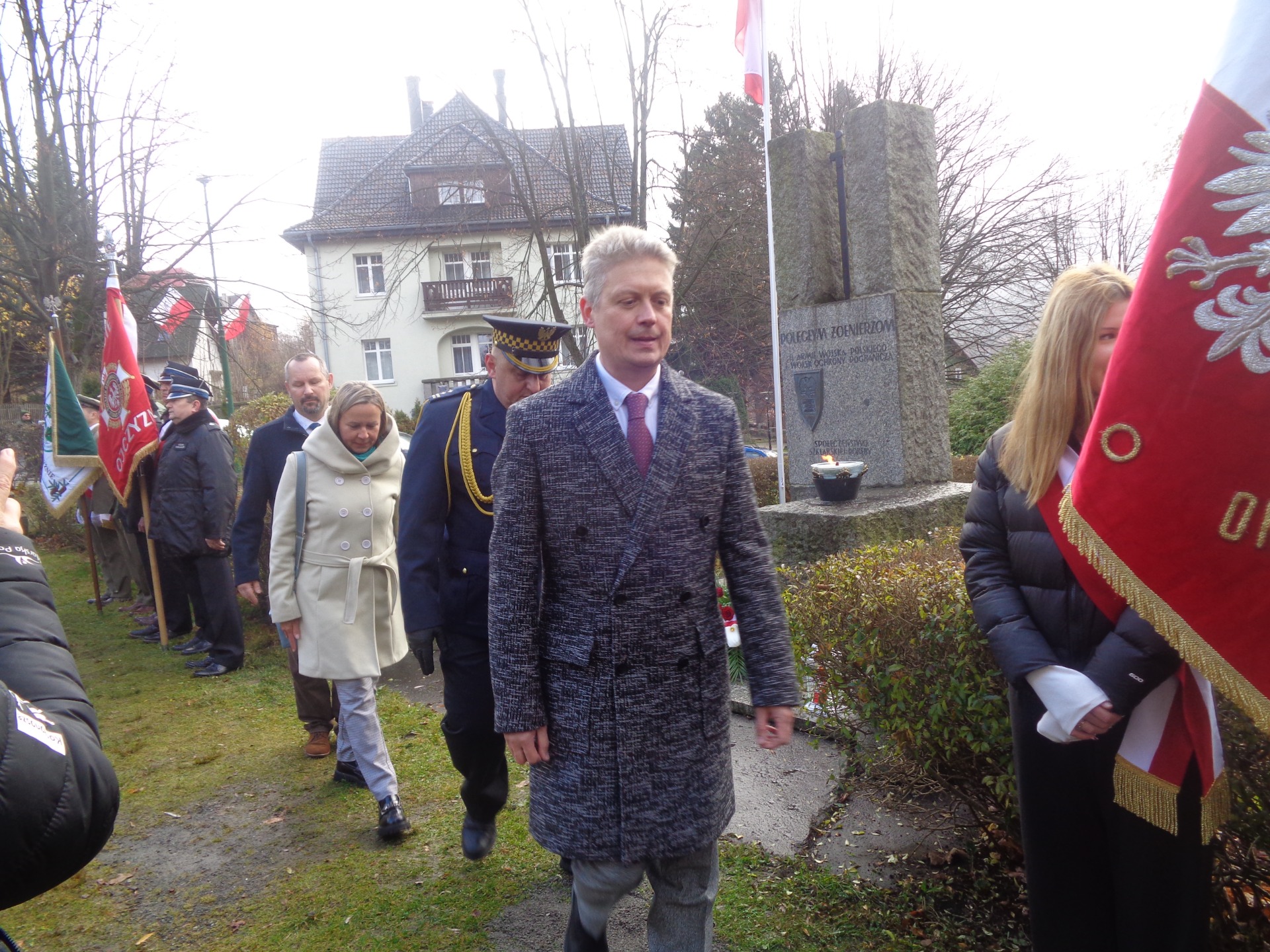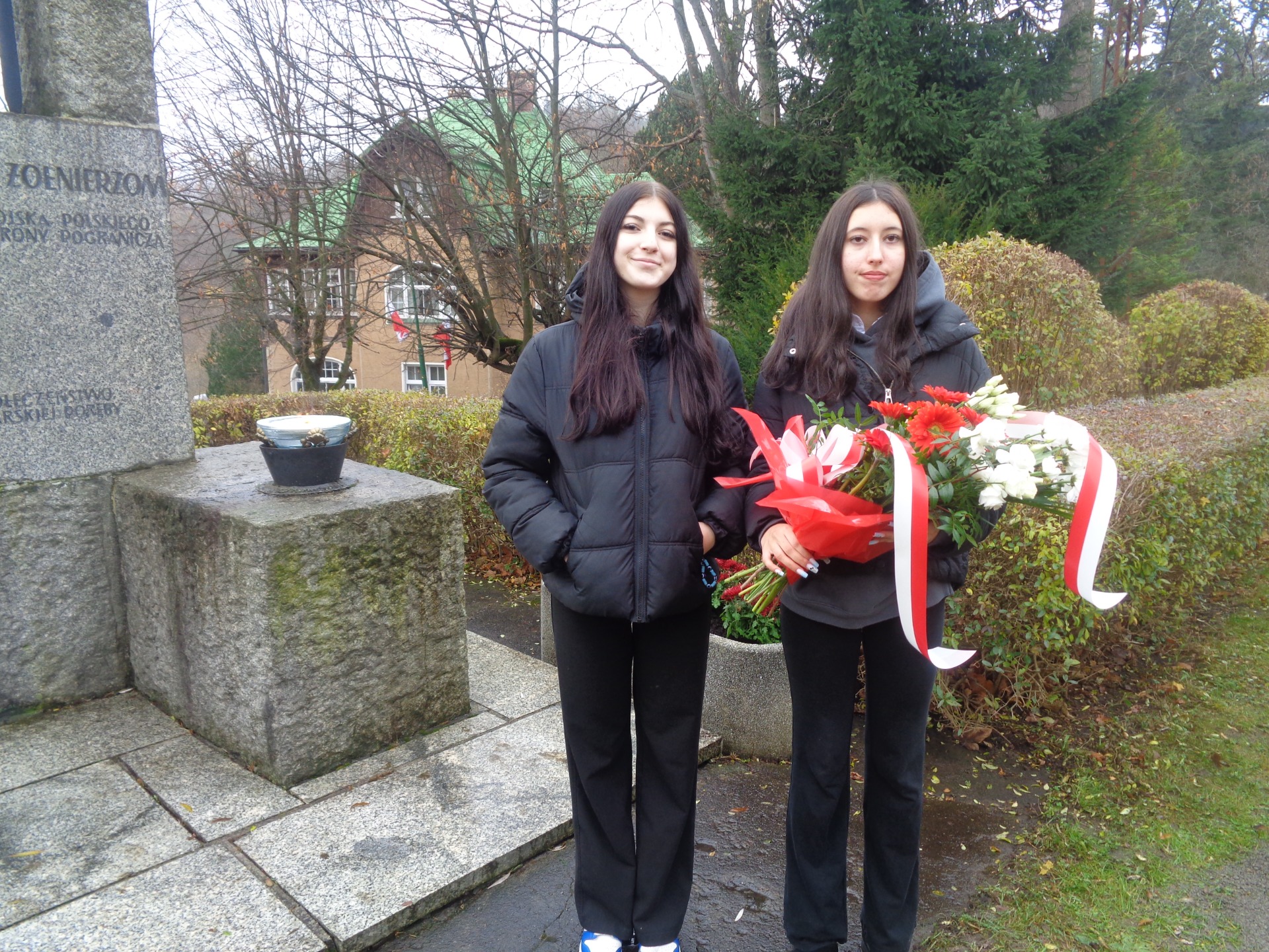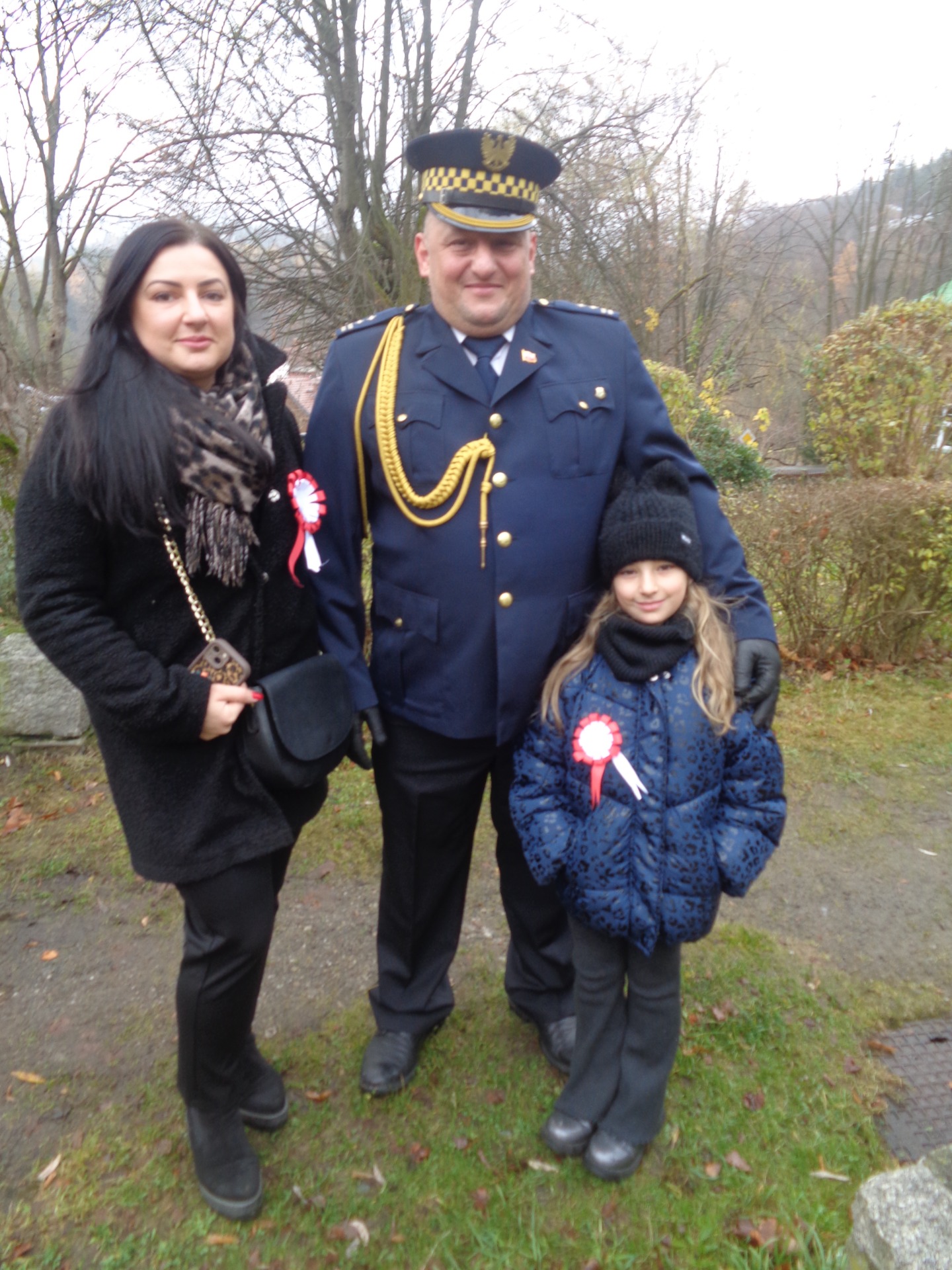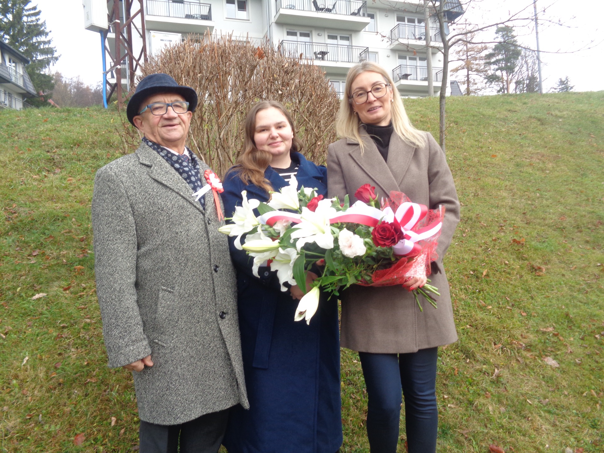 Uroczystość miejską poprowadziła Pani Katarzyna Harbul-Bała, prezeska Fundacji Boskie Karkonoskie, która zwróciła się do zebranych, by każdy przywitał swoich ,,sąsiadów". Przypomniała, że dzisiaj obchodzimy 107. rocznicę odzyskania niepodległości przez Polskę po 123 latach zaborów. Skrzypaczka, Katarzyna Lipert, zagrała utwór ,,Białe róże". Pan Andrzej Broś wygłosił wiersz ,,Bagnet na broń" Władysława Broniewskiego. Po wprowadzeniu sztandarów przez poczty sztandarowe (SP 1: Lena Kałafut, Zuzanna Siudak i Mateusz Olas) wszyscy zaśpiewali cztery zwrotki hymnu państwowego. Przemówienie okolicznościowe wygłosił Pan Paweł Popłoński, Burmistrz Szklarskiej Poręby, który podkreślił, jak ważna jest wolność dla każdego z nas. Pan Artur Cieślik, historyk i archiwista, pracownik Oddziałowego Biura Edukacji IPN, powiedział, w jaki sposób doszło do uzyskania niepodległości przez Polskę po I wojnie światowej. Przekazał Panu Burmistrzowi Ogień Niepodległości, który został złożony przez Pana Pawła Popłońskiego pod pomnikiem. Wyjaśnił, skąd się wzięła idea przekazywania tego płomienia.