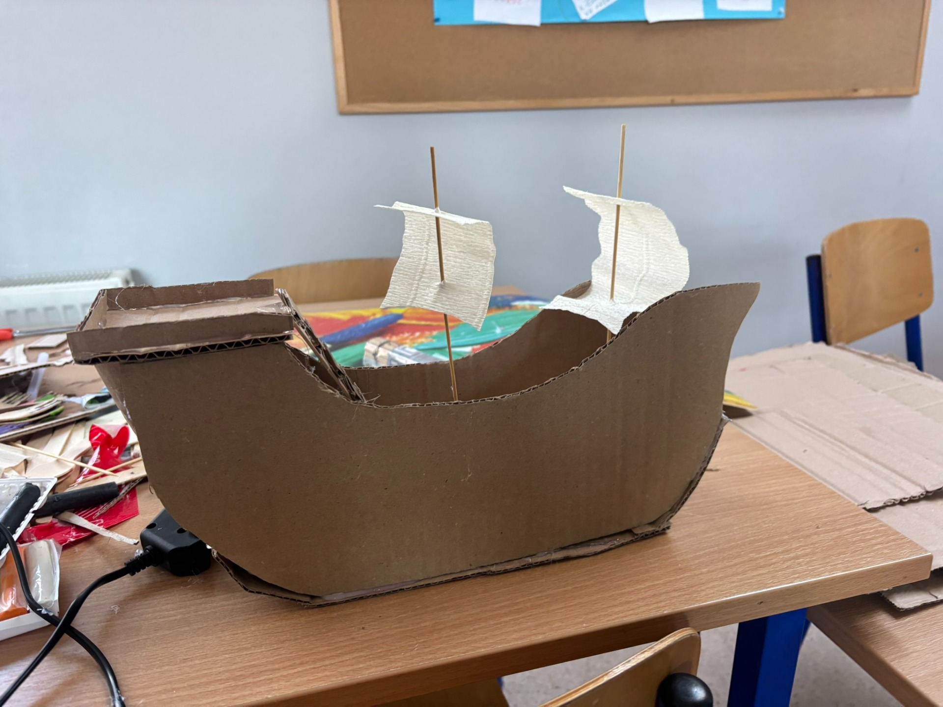 Ostatnim zadaniem było wykonanie makiety jednego ze słynnych statków Kolumba – Santa Marii, Niñy lub Pinty – z materiałów recyklingowych. Uczniowie wykazali się dużą pomysłowością, tworząc niezwykle szczegółowe modele. Do swoich prac dołączyli krótkie „karty faktów”, w których opisali rolę Kolumba w odkryciu Ameryki oraz znaczenie jego wypraw.