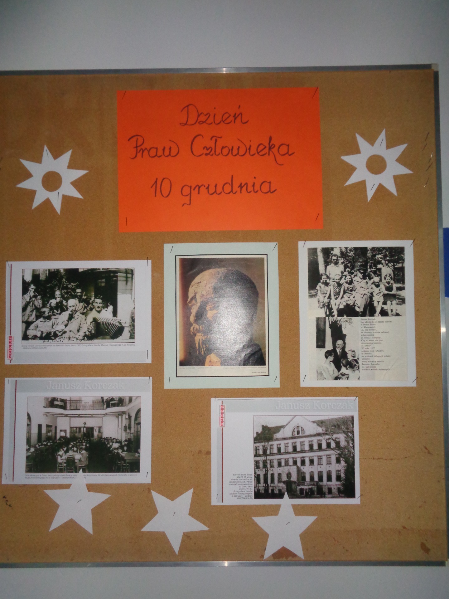 10 grudnia 2025 roku obchodziliśmy Dzień Praw Człowieka. Prawa człowieka wynikają z przyrodzonej człowiekowi godności, przysługują każdemu bez względu na rasę, płeć, język, wyznanie, przekonania polityczne, pochodzenie narodowe i społeczne, majątek. W szkole pojawiły się gazetki okolicznościowe. Nauczyciele przeprowadzili pogadanki w klasach. Przypomnieli postanowienia Konwencji o prawach dziecka przyjętej przez Zgromadzenie ogólne ONZ w 1989 roku, przez Polskę ratyfikowanej w 1991 roku. Wiele z tych postanowień uwzględnia myśli, idee i cele Janusza Korczaka, pedagoga, lekarza, obrońcy dzieci.